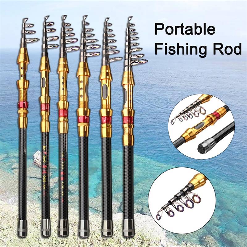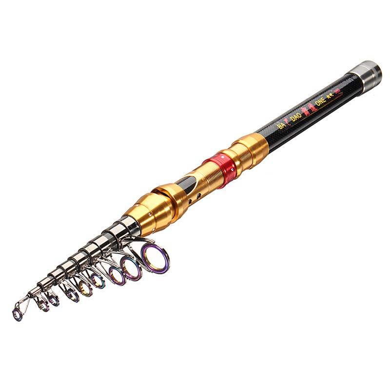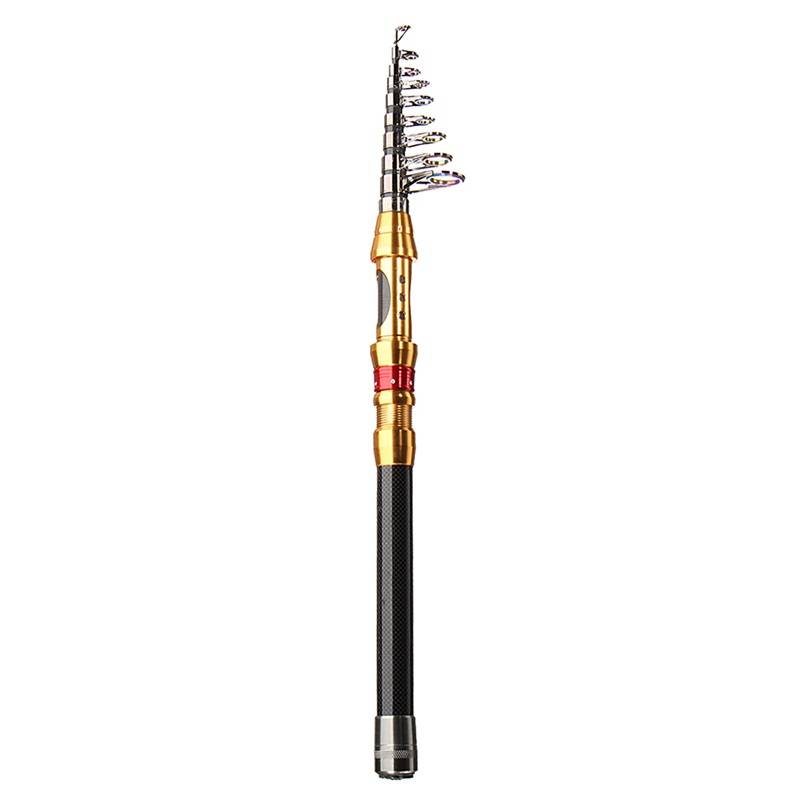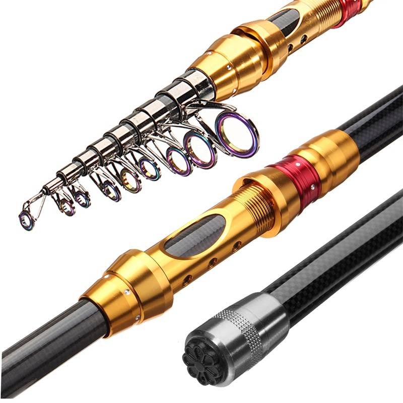 Features: Telescopic Carbon Spinning Pole saltwater Casting Fishing Rods This fishing rod is made from carbon fiber, strong and durable. Adjustable length fishing rod for situations where full-size fishing gear is inconvenient. Portable closed length design for conveniently carrying around. Best suitable for fishing from the shore, reefs and rocks on trips and vacations. An ideal gift for fishing enthusiasts or collectors. Light weight. Stainless steel rod. High quality paint. Bayonet sitting. Rod rod seat wheel and anti-slip handle.