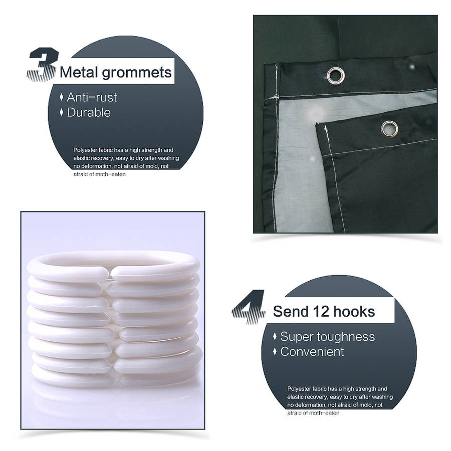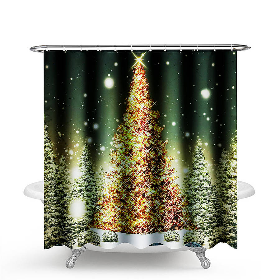 Specification: Material: Polyester Pattern: Shining Gold Dressed Tree Size: 180*180cm Features: - Try our new waterproof polyester fabric shower curtain. Your unique design will brighten your bathroom and create a comfortable bathing environment. - Polyester Fabric : Waterproof Material suitable for bathroom Decor. - Anti-bacterial,machine washable,no dyes substance to harming your family health. - This polyester shower curtain is able to print a vast range of colors with a fine degree of detail. In addition, it allows for easy cleaning. - Images imprinted using heat dye sublimation technique for lasting effects. Don't hesitate, Set the theme of bathroom with a personalized shower curtain to match the tile and vanity colors now! Package Included: 1 x Shower Curtain 12 x C-shaped Curtain Hooks
