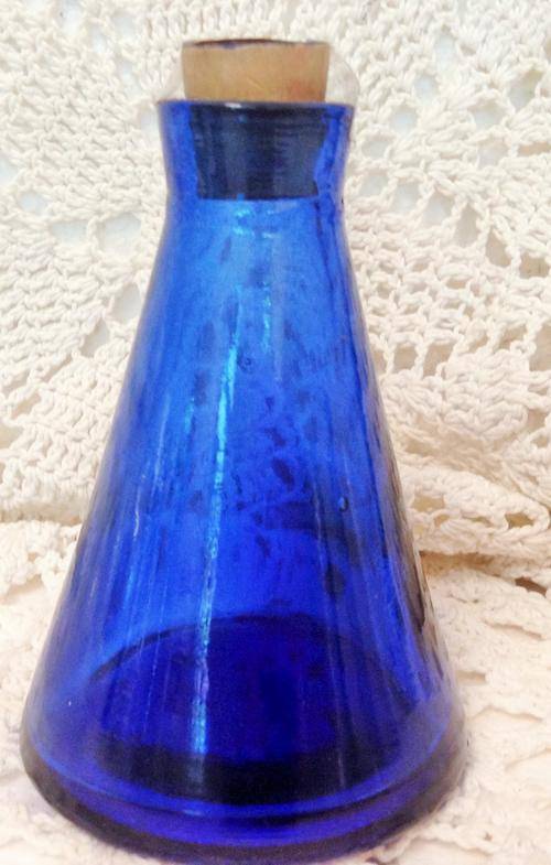 1 SMALL GLASS BOTTLE BLUE CORK TOP