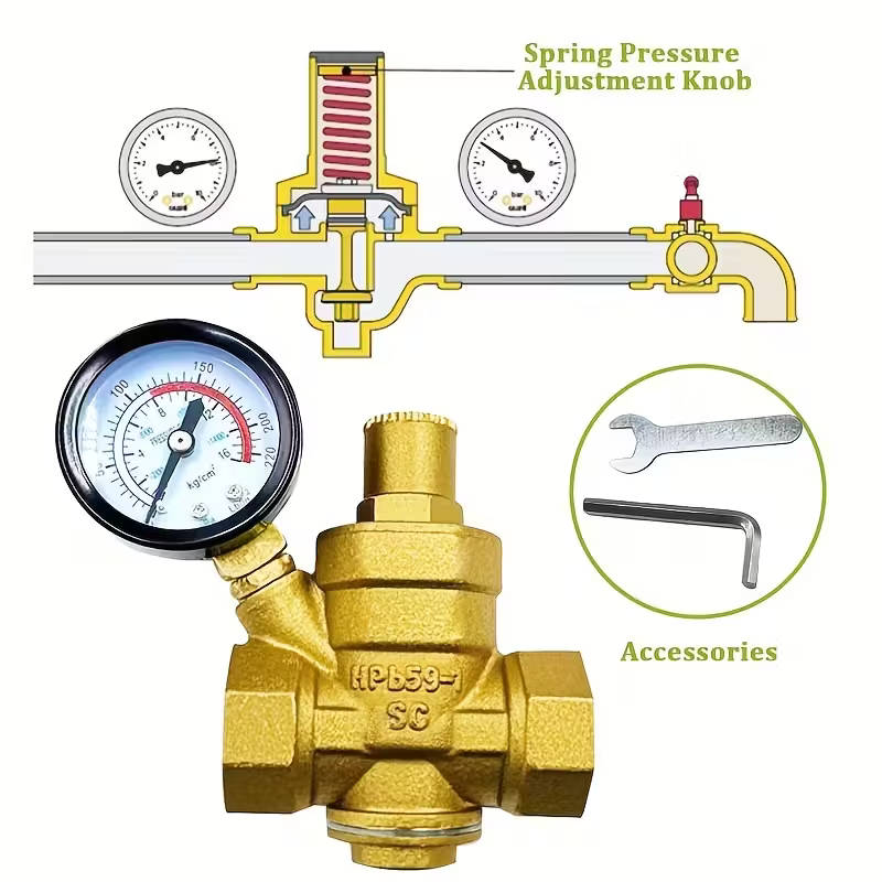 1 Brass Pressure Reducing Valve With Built-In Pressure Gauge