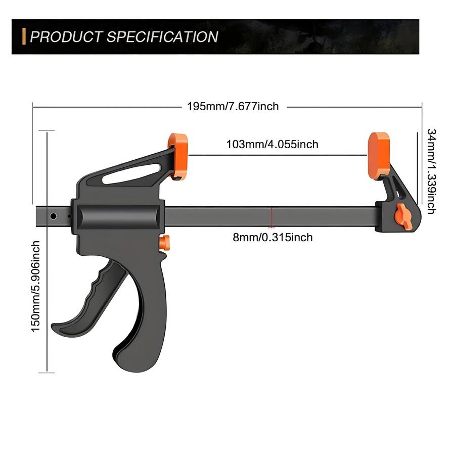 1pc F-bar clamp, Polyurethane foam material, reinforced nylon, quick squeeze ratchet release, non-damaging, precision woodworking and DIY crafts