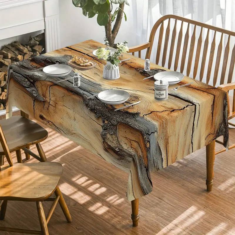 1 Farmhouse Tablecloth - Rustic wood grain tablecloth in brown, gray, beige, black, or white. Durable polyester fabric for dining, kitchen, and coffee tables. Easy to clean, perfect for home decor, parties, gifts, and party tableware. Natural and beautiful, woven quality.