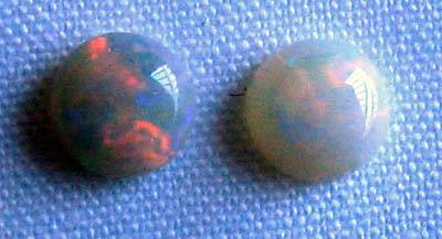 1lot, 2 pieces of 4.00 mm round cut opals, total carat weight 0.42 ct. bluish-with