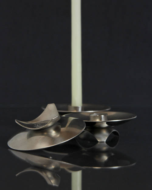1 LOT OF 3 VINTAGE STAINLESS STEEL LUNDTOFTE OF DENMARK NO. 2668 CANDLE HOLDERS