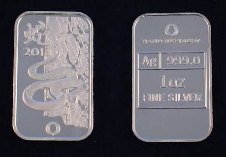 1 Oz Fine Silver Bar - Rand Refinery - 2013 Year of Snake