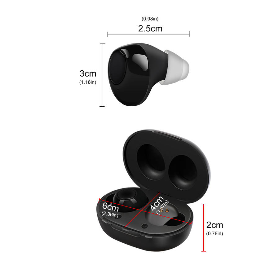 - Wireless earbuds with amplifying sound function, which can be used for hearing impairment.
