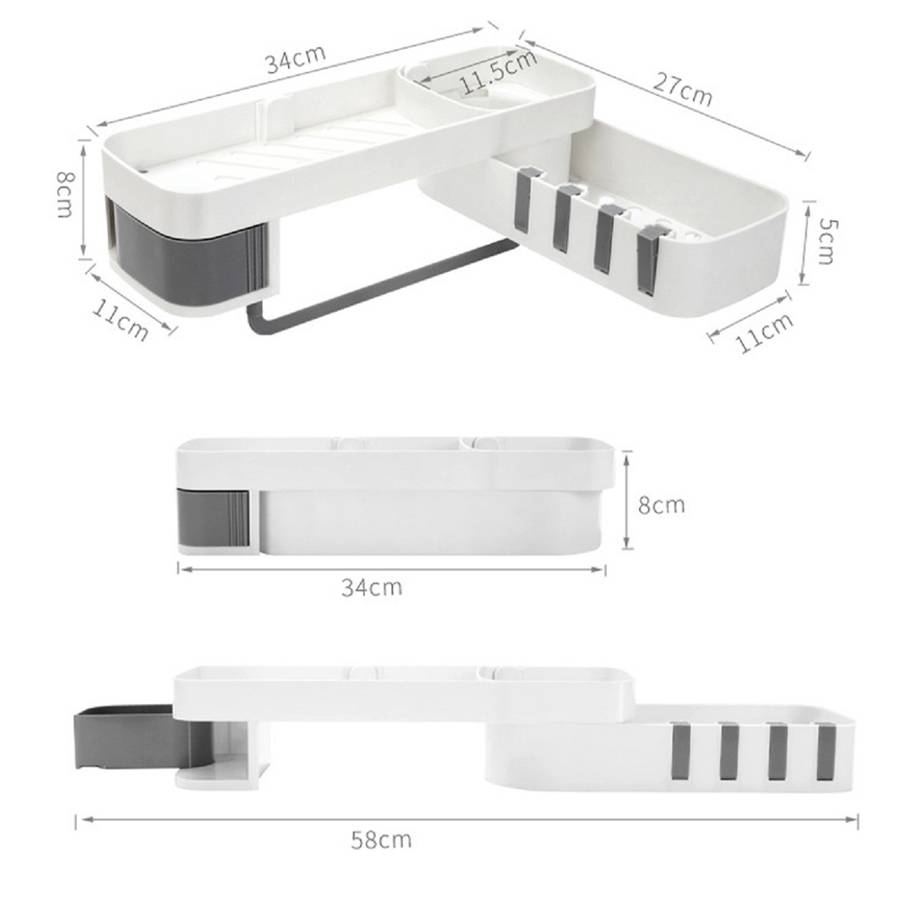 - Four hooks can be used to hang bath balls and towels.