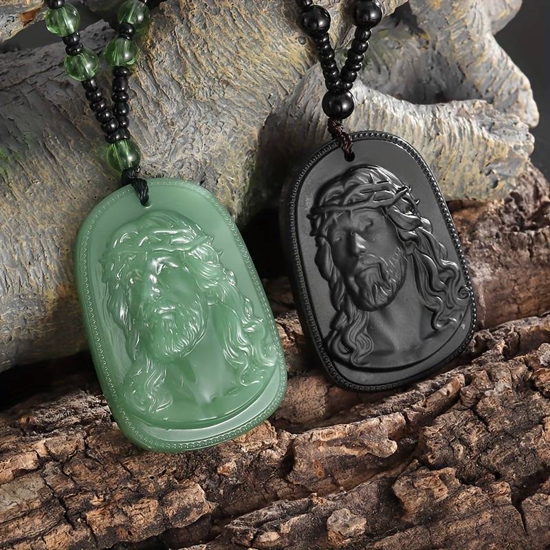 1 Piece Black Jesus Theme Pendant color:Black : Style:Fashionable Type:Pendant Necklace Magnetic:No Main Material:Imitation Jade Mosaic Material:Synthetic Gems