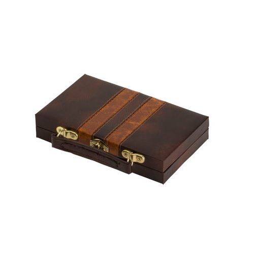 Specifications: Dominoes leatherette case measures 7 3/4" x 4 3/4" x 1.5" / Ivory tile / Qty: 28 / Standard size with Spinners / New in box