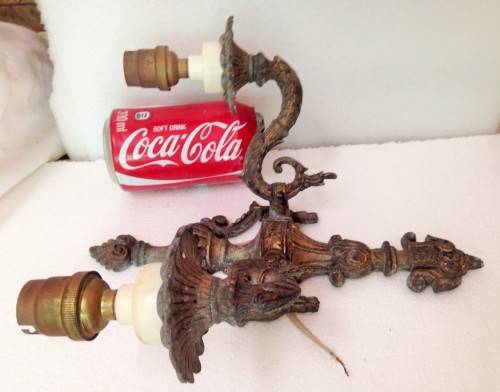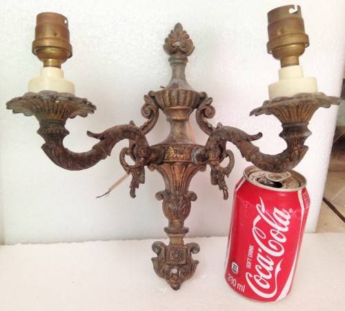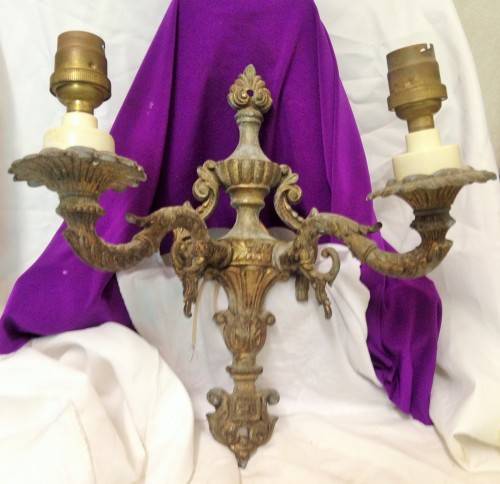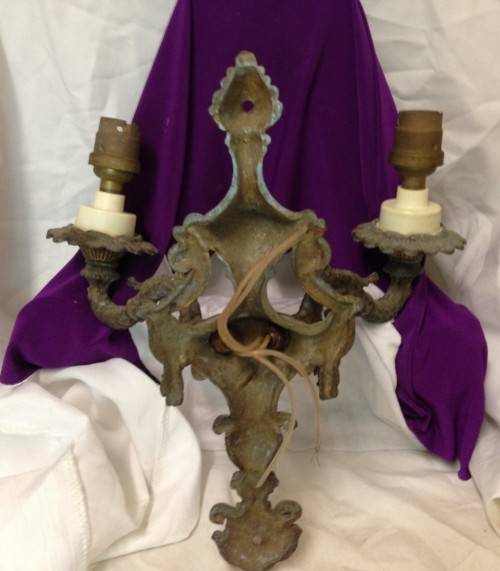 2 TWO ARMED VINTAGE METAL FRENCH SCONCE LIGHT FITTING SOLD AS NOT WORKING LISTING -