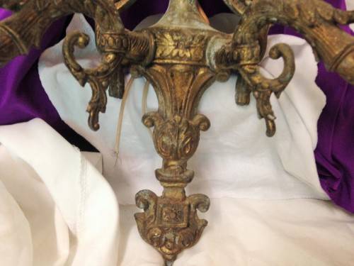 SOLD AS IS IN PICTURE CONDITION-NORMAL AGE AND USAGE RELATED WARE AND TEAR-NO ELICTRICAL FITTINGS- VERDIGREE -OXIDATION-LOSS OF COATING -VERDIGREE -SEE PICTURES