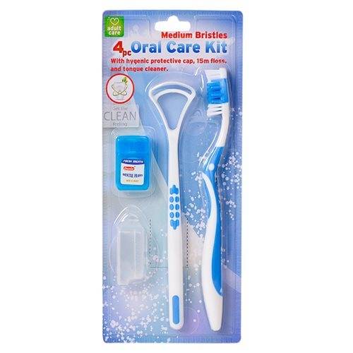 CONTAINS - TOOTHBRUSH, FLOSS, TONGUE CLEANER AND TOOTHBRUSH COVER.