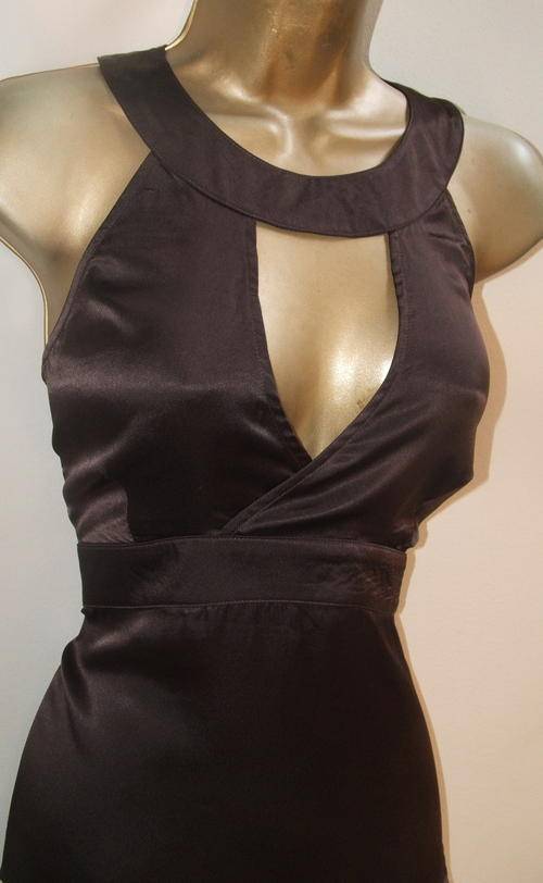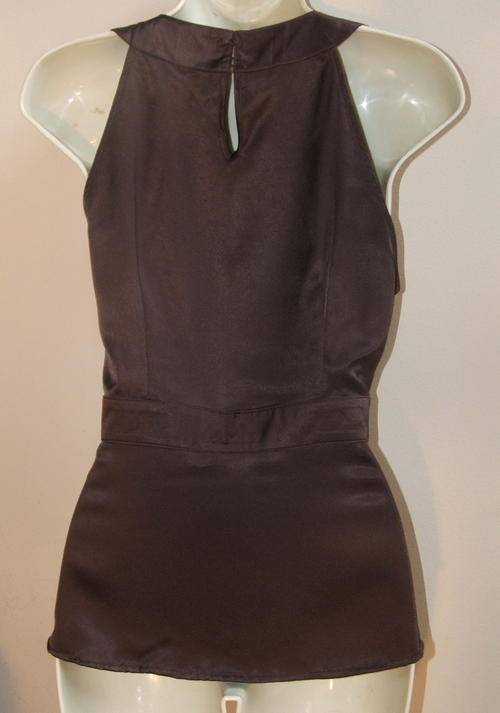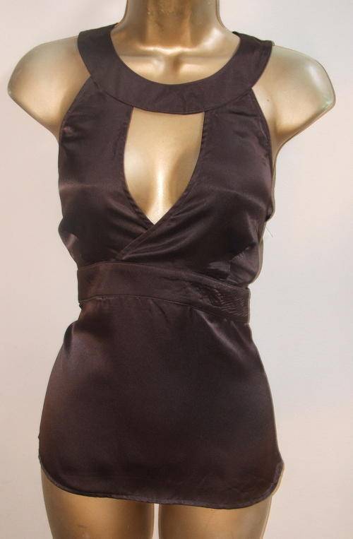 Sexy, peep key hole silky chocolate brown or midnite blacksatin look dressy top.
