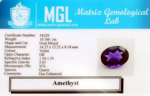 10.16 Ct MGL Certified Oval Mixed Hydro Amethyst Gemstone - AAA Quality
