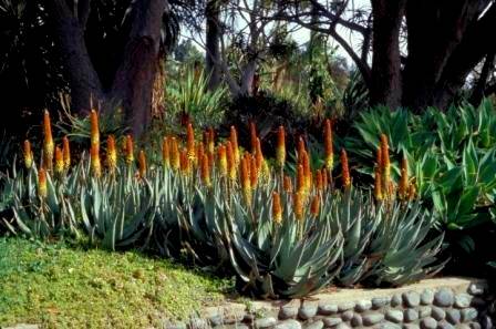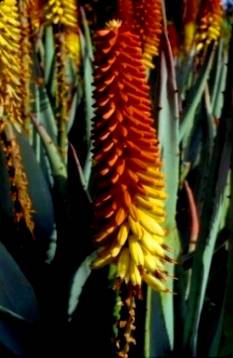 Aloe petricola forms densely leaved rosettes. Scattered thorns are sometimes present on the leaves. From July to August the long and narrow flower racemes are produced. These are tightly packed and usually bicoloured. The buds are red and the open flowers greenish white or in some plants, the buds may be orange and the open flowers yellow. Grows well in cultivation. Very striking when in flower.