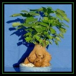 Juvenile plants, which display attractive lobed leaves and swollen taproots, make good pot-plants or bonsai specimens. They are tolerant of dry and pot-bound conditions and respond well to pruning. Trees are typically stout with glossy-green foliage. It is said that the ground-up seeds can be brewed into a coffee substitute or added to bread. The swollen, carrot-like taproot is a nutritious and agreeable vegetable and the gum that the tree exudes is also edible. The fiber taken from the stem has been used in twine and netting manufacture.