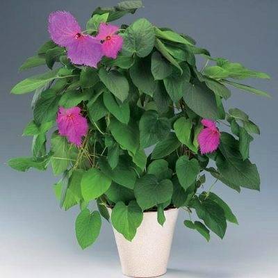The Costa Rican Butterfly Vine seems to enchant anyone who sees it. It has slender, somewhat hairy stems, climbing to 1 to 6 meters. Set along these are large, nearly heart-shaped, toothed leaves. The more dramatic feature, however, is the flowering shoots. Each has a pair of broad, pointed, reddish purple bracts, 5 to 7.5 cm long, widely spreading above and below the clustered small, whitish flowers. Outstanding sized bracts with an eye-catching show of color characterize this vigorous growing vine. With a crepe-paper-type texture, violet pink bracts oppose each other in an open flat bloom, often reaching 12.5 cm in width. On a windy day, they appear to flutter in the breeze. In temperate climates they will bloom on and off all year. They require average watering and seem to enjoy dappled sun or light shade, particularly in summer when the sun really bears down. When the weather heats up they need to be watered much more frequently or they seem to burn. They are not invasive, and are twining so, require a trellis to climb. A beautiful plant and an asset to any garden, this vine will certainly bring a little whimsy to your garden. It also does very well in pots which makes it a great contender for patio space! It can provide all the colour of Bougainvillea without the mess and is cold hardy in temperatures that dip below minus 6° Celsius!  You're buying a pack of 10 Seeds