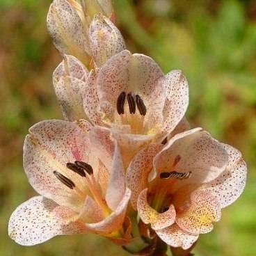 Gladiolus crassifolius grows to 1m tall. it is a summer growing bulbous plant. In late summer it has pink to mauve flowers with darker markings.