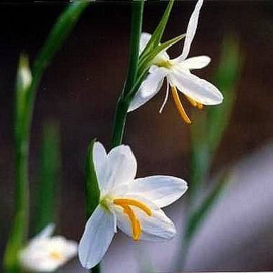 Hesperantha is a cormous genus in the Iridaceae family with 79 species. Four are found in tropical Africa, 37 in summer-rainfall southern Africa, and 42 in winter-rainfall southern Africa. Many of the former are found in the eastern southern African Drakensberg in Kwa Zulu-Natal. In spite of the large number of species there is limited variability in the floral structure. Flowers are radially symmetrical with a style that divides at the mouth of the tube into three branches that spread over the tepals. Most plants are short, 15 to 20 cm. tall or less. A number of them open late in the afternoon or early evening and those are often very fragrant. Hesperantha bachmannii is a South African endemic species from the Eastern Cape, Northern Cape and Western Cape Provinces. It was previously known as Hesperantha angusta and is commonly known as Aandblom in Afrikaans. It grows to 25cm tall and in spring it bears white strongly scented flowers facing downwards. These only open late in the afternoon. On offer is a pack of 10 Seeds We'll supply you with all the germination & care instructions. |