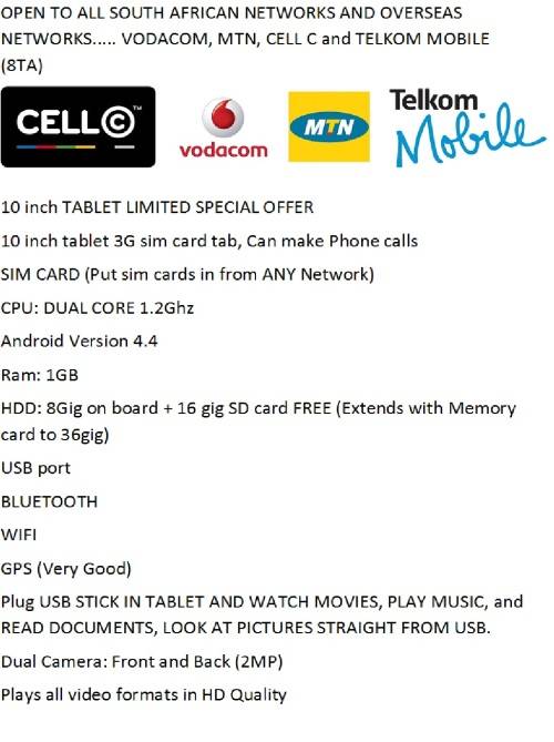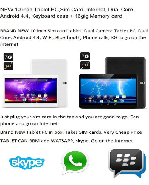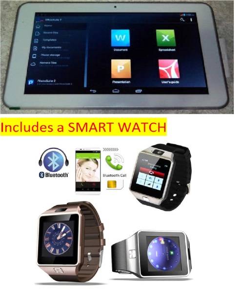 10 inch Tablet,Sim Card, Dual Core, Android 4.4, Keyboard case + 16gig Memory card + Smart Watch