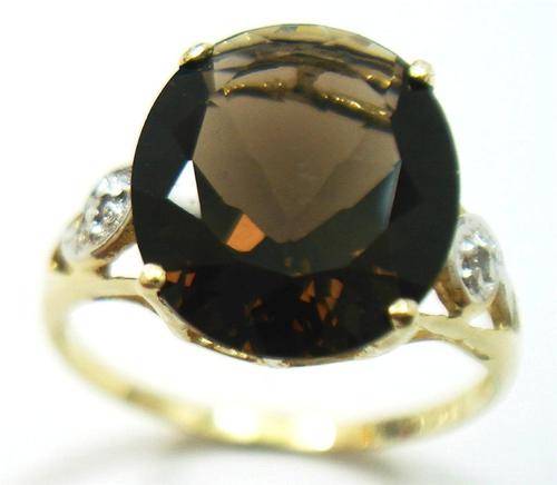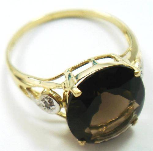 10 KT SOLID YELLOW GOLD AND 5.1 CT SMOKY TOPAZ & DIAMOND RING SIZE 7 !!!!!!! WOW!!!!