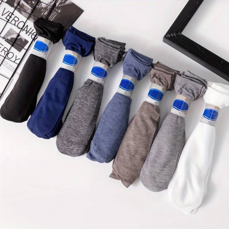10 Pairs Blue One Size of Summer Men'S Mid Calf Socks Solid Color Thin Business Socks. Pattern:Solid color Operation Instruction:Hand wash only Composition:95% Polyester,5% Spandex Weaving Method:Knit Fabric Material:Polyester