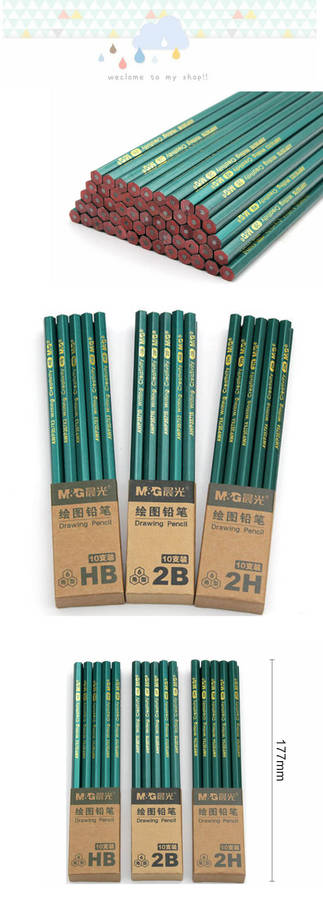 Specification: Brand: M&G Model Number: AWP35715 Body Material: Wood Type: Standard Pencils Lead Hardness: 2B / HB Packaging: 10 Pcs/Set Pencil Lead: Black Lead Package includes: 1 x 10 Pcs/Set Pencils