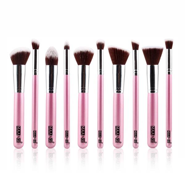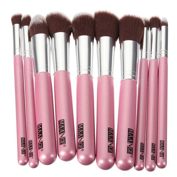 10 pcs Wooden Handle Makeup Kit Cosmetic Brushes Set Features: 10 Pieces makeup brushes set. Used for eyebrows, eyelashes, eyes and cheeks makeup. Fulfill all daily basic makeup requirements. All brushes are made with animal hair and fiber, easy to put on cosmetics.