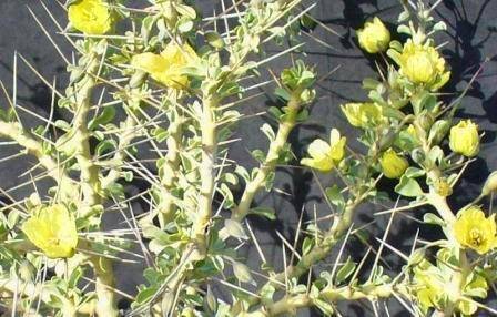 The branches are usually less than 10 mm wide. The leaf blades are broadly obovate to flat with a ± circular outline (orbicular), 3–11 mm, pale bluish green and hairless. The spines are thin and straight and form 2–4 blunt stalks in axils of spines. The flower petals are 16–26 mm long and are yellow to lemon yellow. You're buying a pack of 10 Seeds We'll supply you with all the germination & care instructions. |