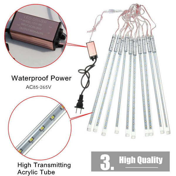 Features :- LED Shower Meteor Rain Lights, Meteor Effect, Romantic aesthetic,Low-Voltage Power Supply, IP65 Waterproof, more Durable.
