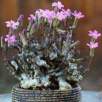 Tylecodon is a genus of succulent plants in the Crassulaceae family. Until the late 1970s all these plants were included in the genus Cotyledon, but in 1978 Dr Helmut Tölken of the South Australian Herbarium split them off into a genus of their own. The new name: "Tylecodon" was chosen as an anagram of the earlier name Cotyledon. Tylecodons generally lose their leaves during summer. From mid-autumn to early winter the new leaves are borne in spiral arrangements at the branch tips. The Tylecodon genus is very varied, ranging from dwarf succulents such as Tylecodon reticulatus to Tylecodon paniculatus, which may exceed two metres in height. They all well suited to being raised in rockeries and in pots. When grown in small pots their height can be controlled and they make interesting looking natural bonsai. Tylecodon schaeferianus is synonymously known as Adromischus hoerleinianus, Adromischus hoerleinianus var. schaeferi, Adromischus keilhackii, Adromischus schaeferianus, Adromischus schaeferianus var. keilhackii, Cotyledon hoerleiniana, Cotyledon hoerleiniana var. schaeferi, Cotyledon schaeferi, Cotyledon schaeferiana and Cotyledon sinus-alexandri. Tylecodon schaeferianus is a small perennial succulent species. It readily branches, producing egg-shaped succulent leaves which are clustered around the growing tip. Just as the leaves are falling off at the beginning of summer, pretty pink flowers appear and attract nectar-loving birds and insects in its native habitat. It makes for an excellent feature plant, perfect for rockeries, containers and water wise gardens. It also makes an interesting houseplant, growing well in bright sunlight and with little watering. Over time it forms gnarled stems with fissured, flaking bark, growing from tuberous roots. It has a caudex and is therefore termed a caudiciform plant.