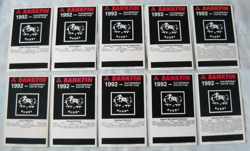 10 x 1992 NATAL CARDS-RUGBY SPORTS DECK-BANKFIN CURRIE CUP SERIES-EXCELLENT CONDITION-SHARKS