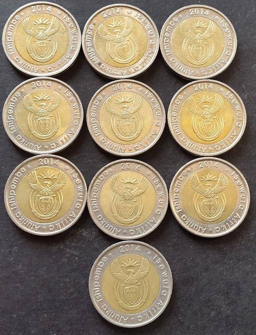 10 x 2014 - 20 Years of Freedom R5.00 coins - Bid per coin to take the lot!