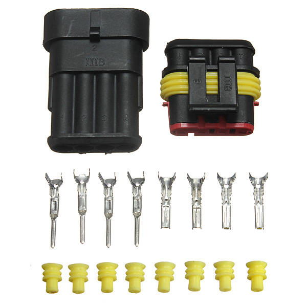 10 X 4 way male connector housing and insert 10 X 4 way female connector housing and insert 10 X Silicon rubber connector seal 80 X Silicon rubber cable seals 40 X Male terminals 40 X Female terminals