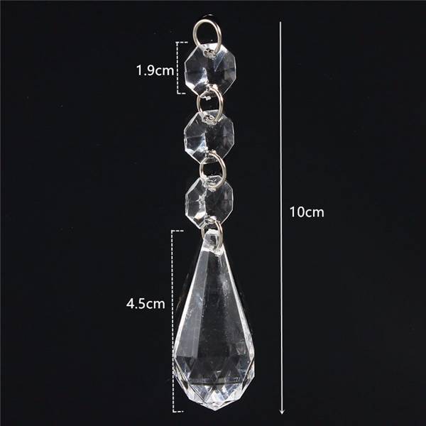 -These multifaceted acrylic crystals are connected by silver rings, so you can easily adjust the length you need for your decoration.