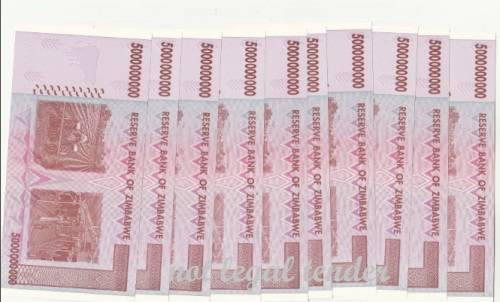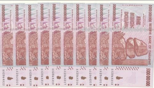 Rare find :10 x crisp uncirculated AA Zimbabwe 5 Billion Dollar notes (hyper-inflationary notes)