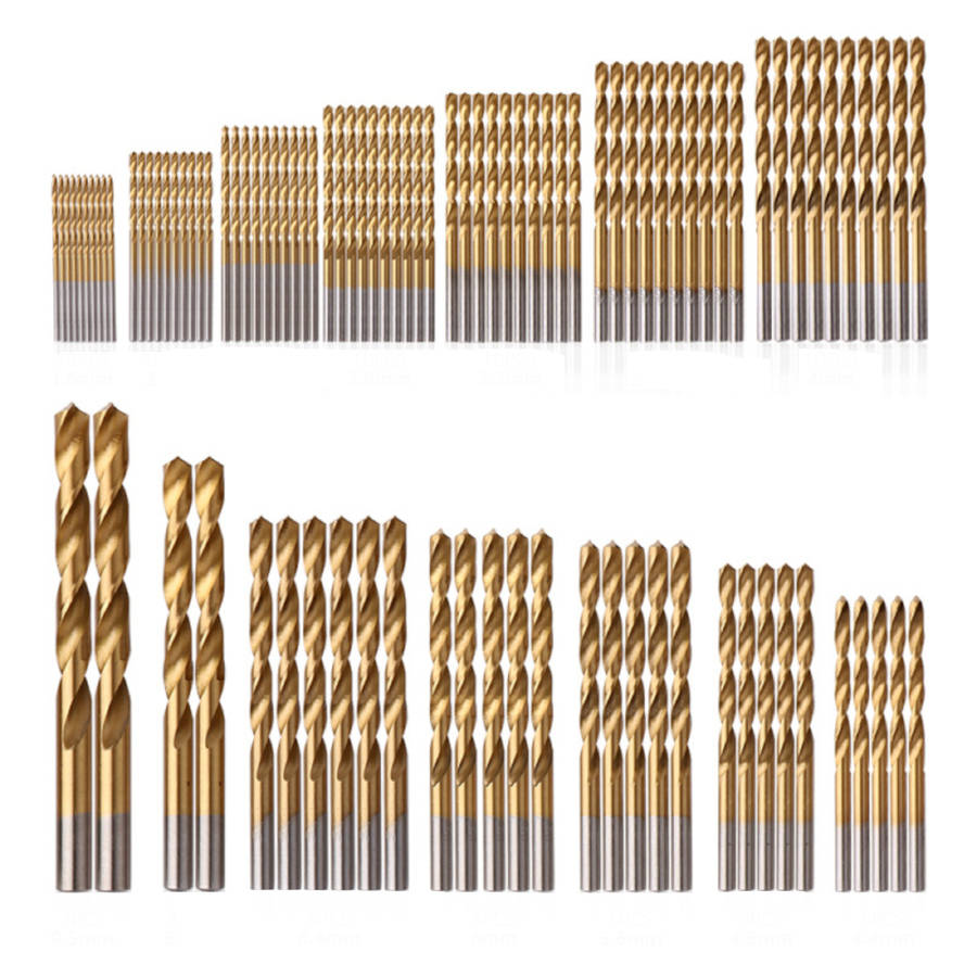 100/130pcs HSS Twist Drill Bit Set Titanium-Coated Drill Bits Woodworking Masonry Drill for Wood Steel