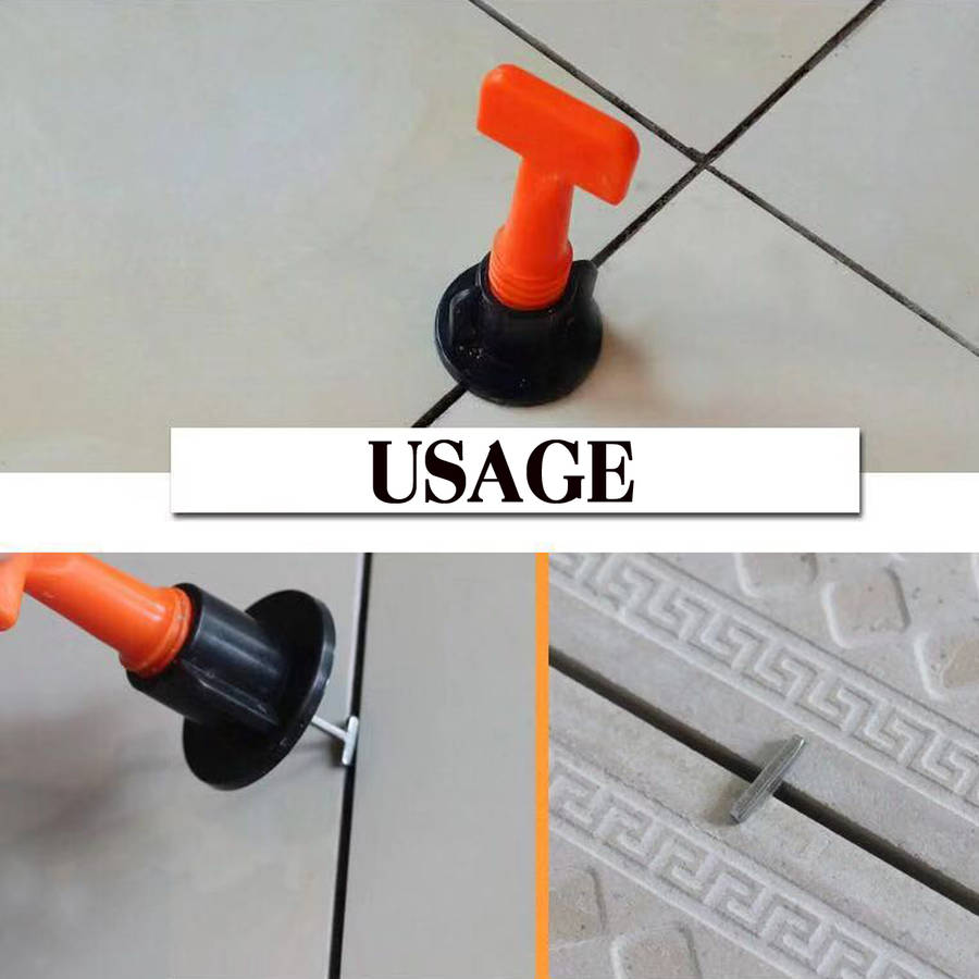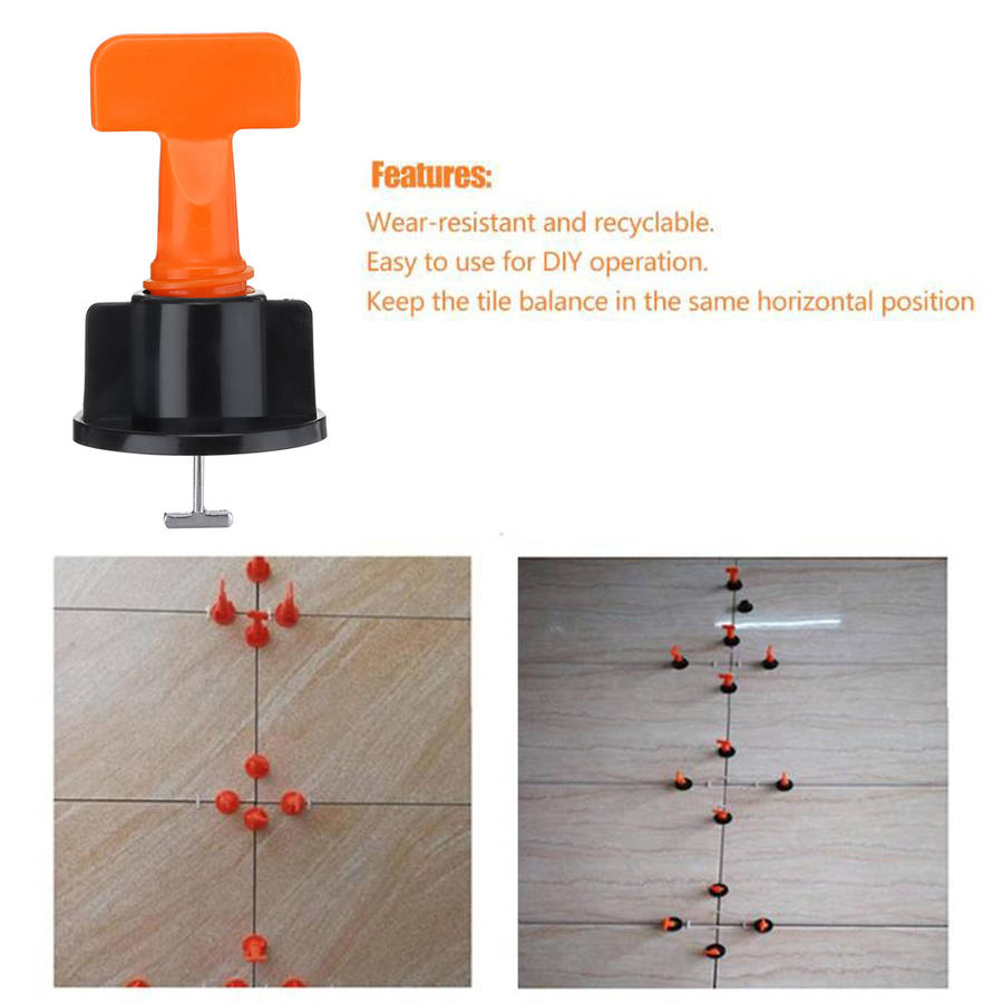 Description: 100/150Pcs Tile Leveling Floor Kit Alignment Clip Reusable Spacers Locator Kit ? Specification:? Material: High Quality PP + Stainless Steel Color: Black+Orange Applicable Brick Difference: 2-6mm / 0.08-0.24 Applicable Tile Thickness: 3-16mm / 0.12-0.63 Set 1: 100Pcs Set 2: 150Pcs ? Features: - Wear-resistant, recyclable, reusable. - Easy to use in DIY operation. - Balance tiles in the same horizontal position. - Improve tile installation speed. - Reduce installer fatigue / pressure. - There is virtually no crackless, flat surface. - This reduces the need for sharpening and polishing. - Avoid shingles from movement during solidification. ? Usage Tips: Lay the first tile, leaving more than 2mm (with cross joints). Close to tile. Insert T-pins next to the gap between the tiles. Then rotate 180 degrees and the T-needle is attached to the bottom of the two tiles. Adjust the cover by hand / special wrench until the two tiles are on the same level. After leveling for about 5-6 hours, before the cement / adhesive is completely dry, rotate the lid in reverse and take off the 180 degree T needle until the floor is removed. ? Avoid not removing the T-leveling tile system: 1. Ceramic tile joints are 2mm or more (cross joints are recommended) 2. When leveling, adhesive cement or tile cement around T-type leveler should be cleaned. 3. Remove the T-type straightener about 5-6 hours after leveling before the tile or cement binder is completely dried. ? Package Included: 100/150 x Tile Leveling System Floor Kit (Optional) ? More Details: