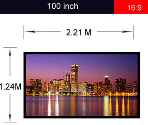 16:9 screen format and diagonal 100 inch offers 87” x 49” viewing area