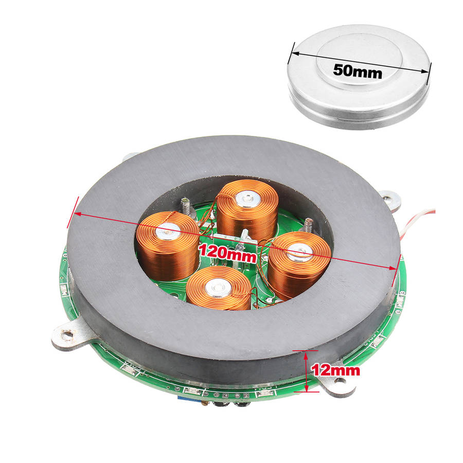 Feature: - Automatic rotation, the suspension height of this product is about 3cm. - Ultra-quiet, it can work 24 hours non-stop. Specifications: Model: E67301 Size: 120 x 12mm Floater diameter: 50mm Power adapter: 12V 2~4A Volt: 100-240V Load Bearing: 500-650g Suspension Height: Approx. 3cm Package included: 1 x Magnetic System Module 1 x Floater 1 x Adaptor Details Pictures: Details Pictures: