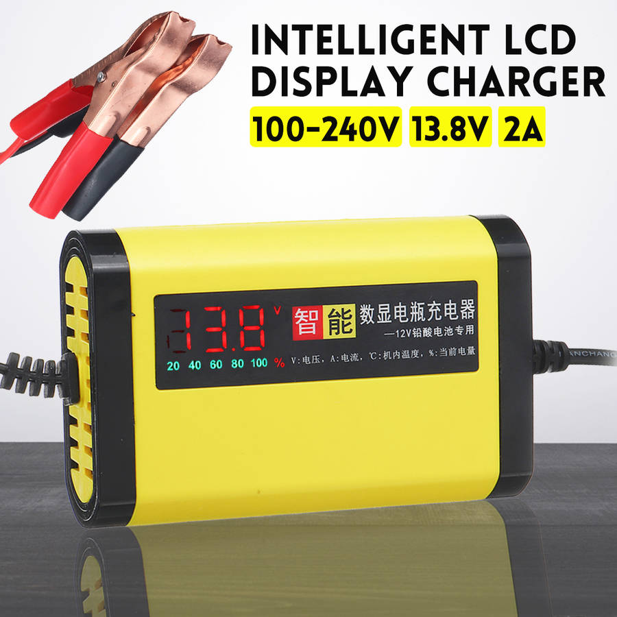 Specifications: Name:Intelligent LCD Display Charger Color:yellow Input Voltage:100-240V Output Voltage:13.8V Output Current:2A Rated Power:30W Size:12*8*4cm/4.7*3*1.6in Battery Type:Lead-acid