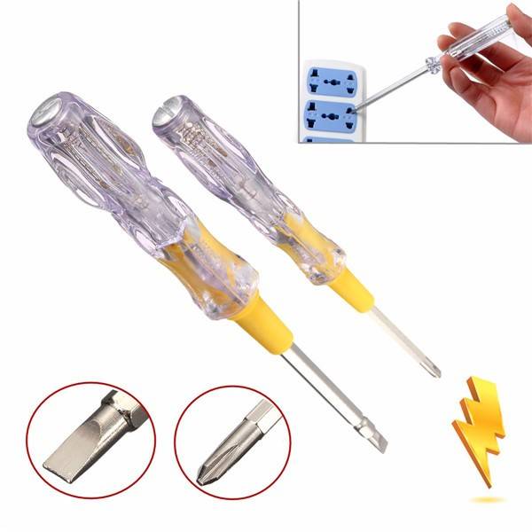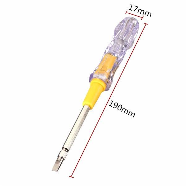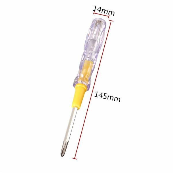 Multifunctional household test pencil, you can use it to test circuit and distinguish whether an object is electrified. Light weight and easy to carry. Double heads, can be used as slotted screwdriver and Phillips screwdriver. Measuring range:100-500V (mm) Size: 190mm (Phillips Screwdriver) / 145mm (Cross Screwdriver)
