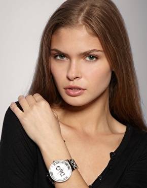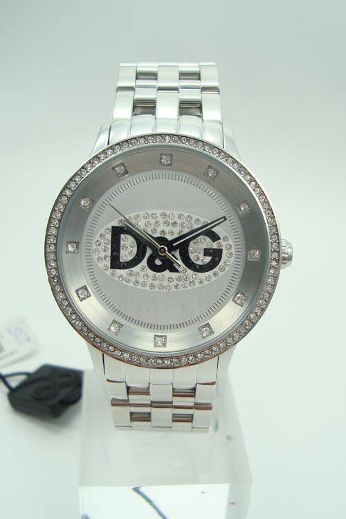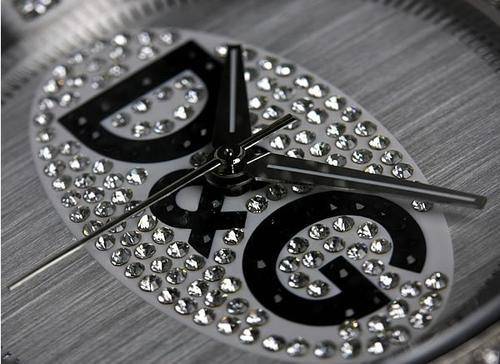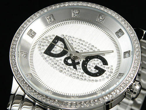 An ideal timepiece for the Dolce & Gabbana aficionado, the D&G Dolce & Gabbana Prime Time Watch features plenty of style, including a jewel-encrusted bezel, larger jewels for hour markers, and additional jewels that surround the large "Dolce & Gabbana" logo on the attractive silver dial. Suitable for complementing a variety of formal and casual wear, this watch also features a stainless steel case and bracelet, and the bracelet closes with a jewelry clasp for a comfortable fit. Other features include a curved mineral crystal, Japanese quartz movement, and water resistance to 99 feet (30 meters). Case diameter 44mm.