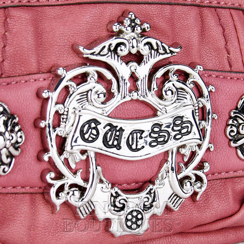 ÃÂ Fine quality Vinyl outer. Top zip closure.ÃÂ GUESS crownÃÂ emblem in front of the bag. Silver stud & ring hardware.ÃÂ Single strapÃÂ handle. Great with either jeans or formal fashion. WinterÃÂ /ÃÂ Summer Collection. Interior: 1 zip pocket and 3 slip pockets. | |