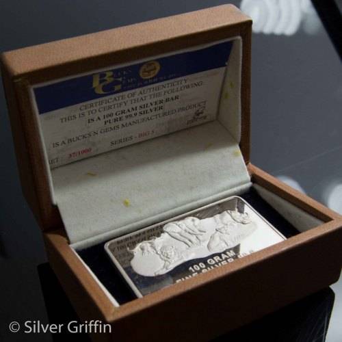 100 grams Bar Fine Silver 999 - Big Five series set 37/1000