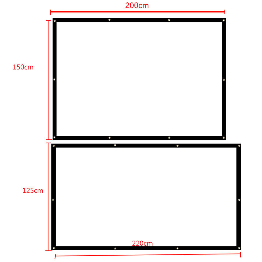 Specifications: Material: Fiber synthesis soft curtain Category: Conference screen Curtain color: black and white Size:100 inches (cm) 220x125cm/86.61x49.21`` 200x150cm/78.74x59.06`` Model: PS-213 Proportion: 16: 9/4: 3 Package Weight: 785g/781g