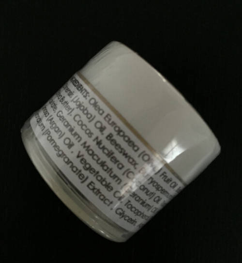 Olea Europaea (Olive) Fruit Oil, Buxus Chinensis (Jojoba) Oil, Yellow Beeswax, Butryospermum Parkii (Shea Butter), Cocos Nucifera (Coconut) Oil, Tocopheryl Acetate (Vitamin E), Geranium Maculatum (Geranium) Oil, Argania Spinosa (Argan) Oil, Tocopherol, Punica Granatum (Pomegranate) Extract, Vegetable Glycerin, Aqua.