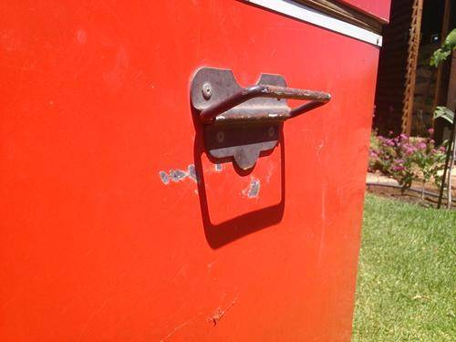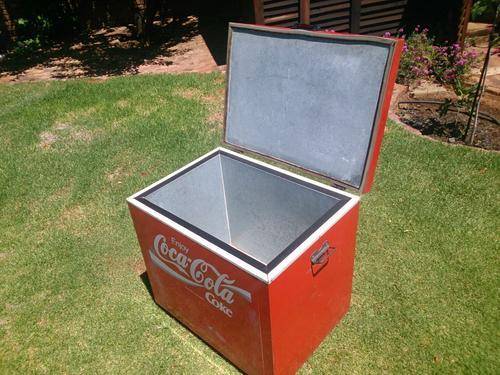 Old steel cooler box, in very good condition for its age, size approx 800mm x 600mm x 700mm.