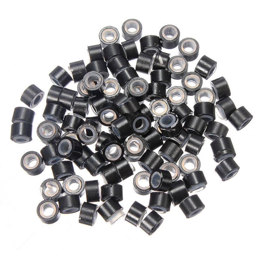 100 pcs Silicone Feather Hair Extension Tool Beads Micro Link Ring