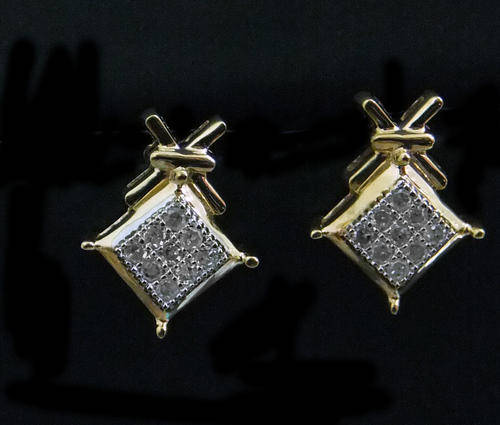 100% REAL, SOLID 10KT YELLOW GOLD NATURAL DIAMONDS EARRINGS